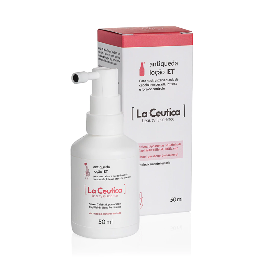 Controle intensivo da queda capilar súbita, ideal para quadros de Eflúvio Telógeno (ET). A Loção ET [La Ceutica]® atua reequilibrando o ciclo capilar, acalmando o couro cabeludo e estimulando a retomada do crescimento saudável.